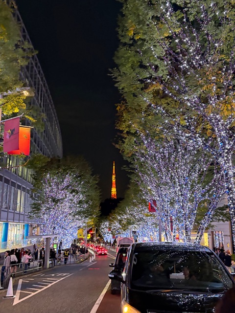 ところで、自転車か仕事でしか東京に行く事は殆どなく 前日から東京に入った事で 約束の晩ご飯まで時間があって久々に東京をウロウロした。場所が六本木だったので 新東京国立美術館やミッドタウンで時間を潰し 少し早めに六本木ヒルズの誘われてるお店近くまで行ったらすごい人、けやき坂のイルミネーションの間から東京タワーが綺麗に見えインスタ映えするスポットとして大混雑するらしい。横断歩道の真ん中から撮るのがベストポジション? 自分は渡りながらそんなに上手く撮れないから食事の帰りにお店の人に教えて貰った別の場所から撮ってみた。