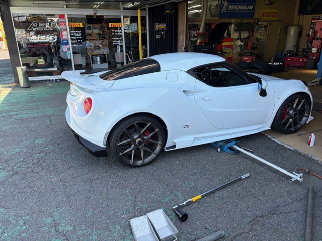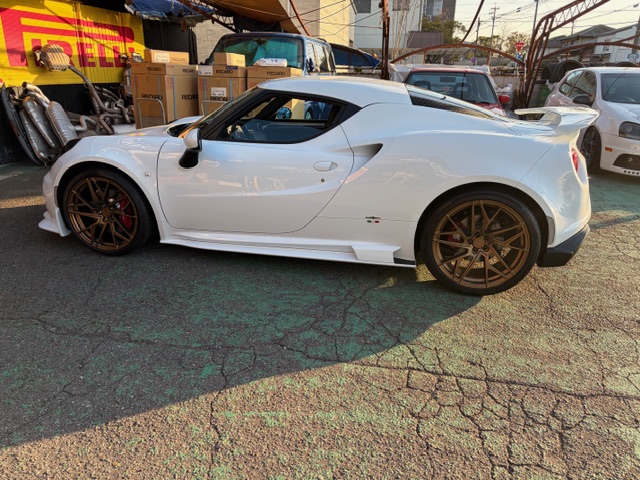 今日は仕事関係の予定は何も無くプライベートな用事のみ。ヘッドライトの修理から戻ったアルファロメオ4Cのホイール・タイヤ交換をピレリ四日市 山本さんにお願いしてあったので 朝10時に持って行った。中古で車を買った時に付いていた赤いホイールがあまりにセンスが悪くてみっともないし、いい歳こいて嬉しそうにそのまま赤いホイールで乗ってるのも結構ぉ恥ずかしいからヤフオクで出品してみたけど 何しろ車が少ない上にわざわざ赤いホイールを欲しがる人は少ないから 結局売れなかった。